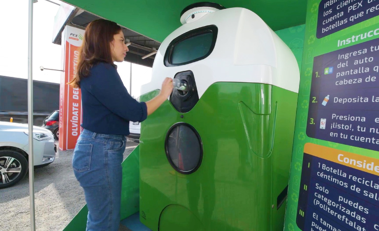¡Reciclar botellas de plásticos te hará ganar saldo PEX! Con ayuda de IRBIN, robot ecológico, podrás ganar S/. 0.10 de saldo PEX por cada botella de plástico (material PET) que coloques en dentro del robot. Disponible en nuestro punto de venta Palmeras.
